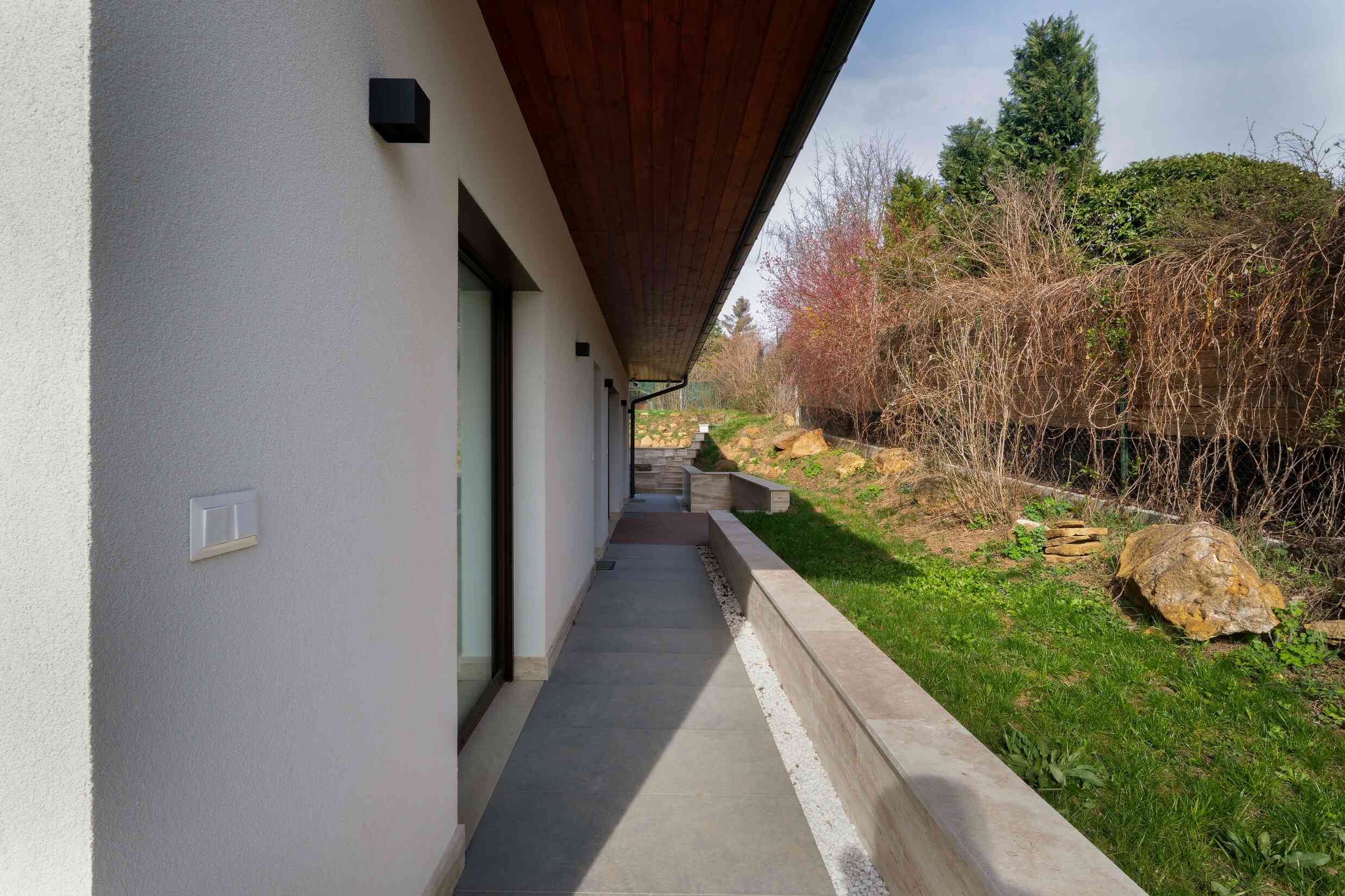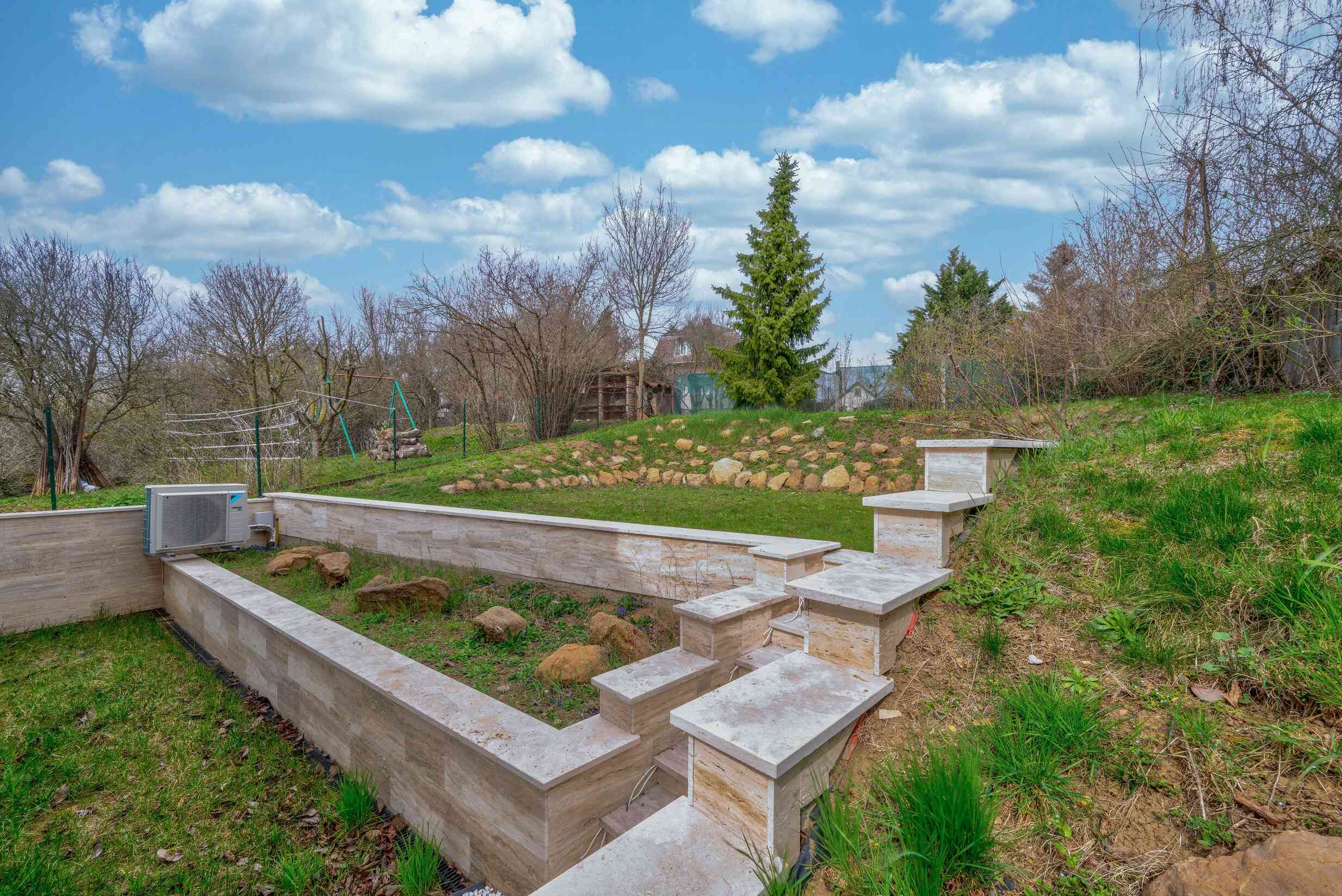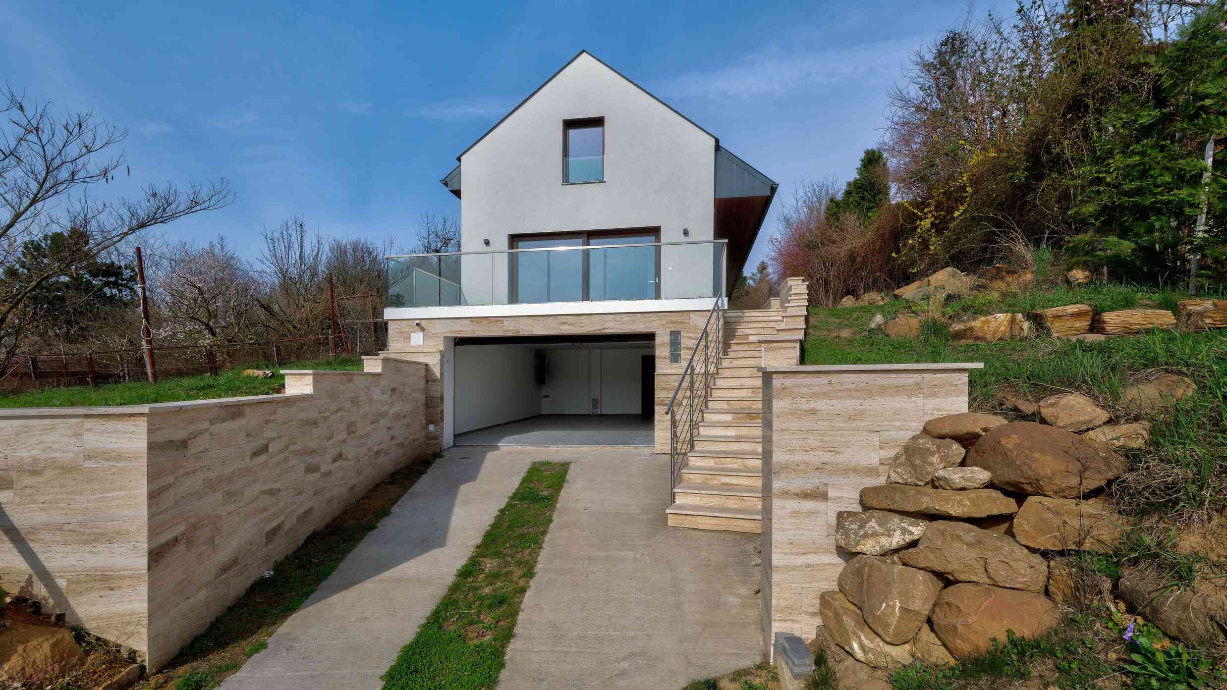 A gondosan kialakított, lépcsőzetes kert hangulata tökéletesen illeszkedik a környezethez, miközben a belső terekben a magas minőségű anyaghasználat és az igényes dizájn minden részletében visszaköszön.