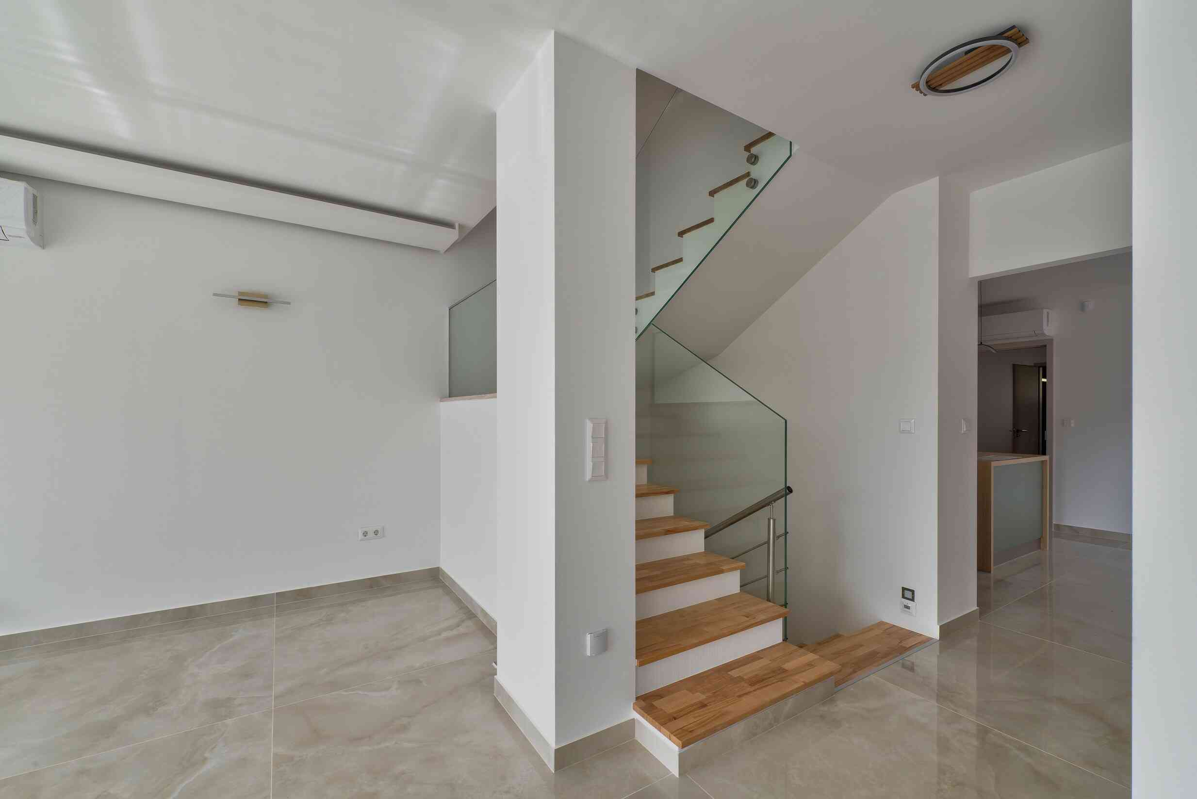 Az ingatlanhoz egy két házzal közös kocsibeállón keresztül jutunk el, amely diszkrét megközelítést garantál. Már az érkezés pillanatában érezhető a magas minőség és az átgondolt tervezés harmóniája.