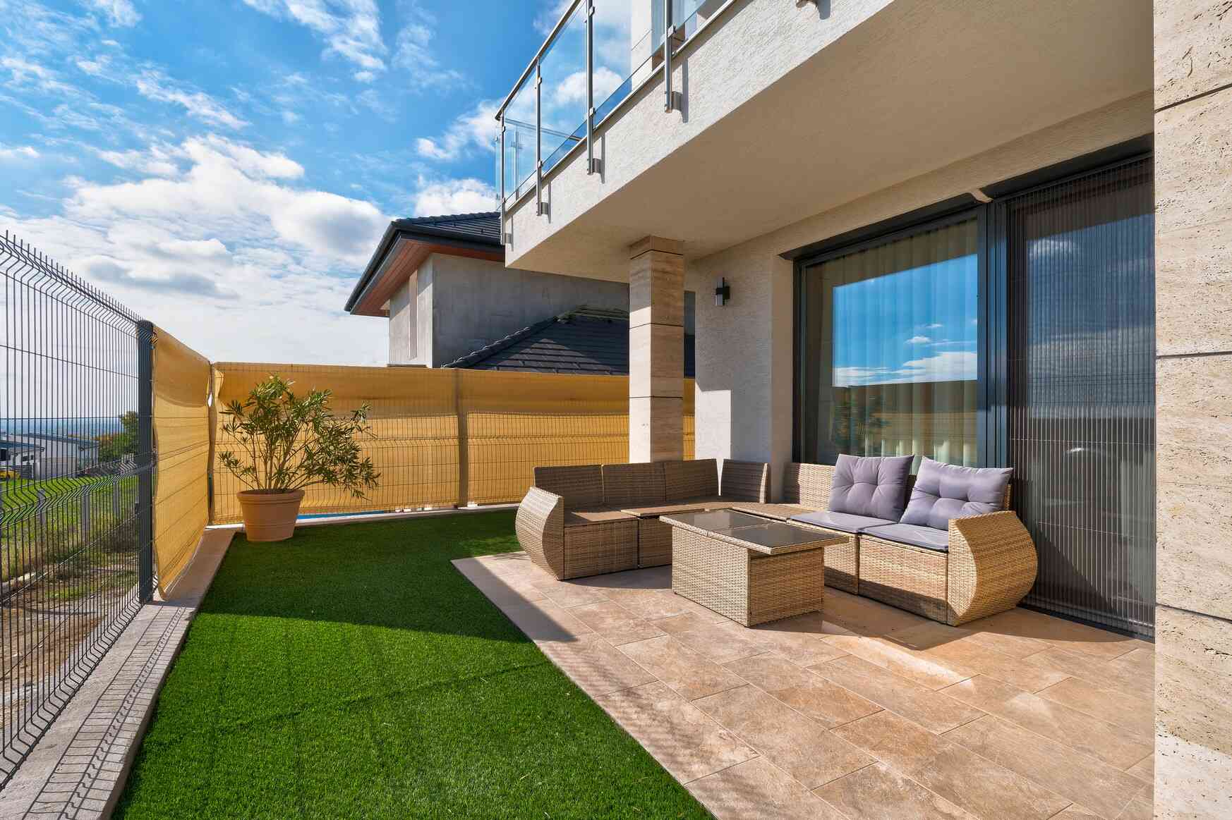A telek 300 nm-es, nagyrészt burkolattal ellátott, így itt a kertészkedésbe nem kell nagy energiát fektetni.