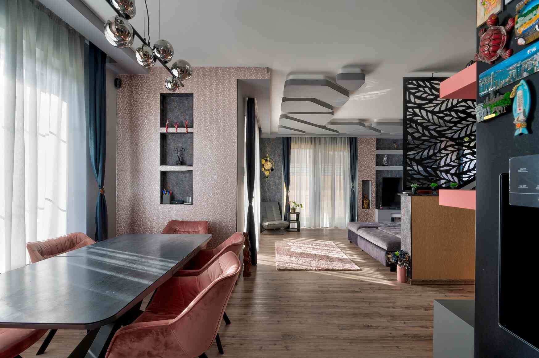 Az ingatlan 156-nm-es, belső kétszintes. Az elosztása kitűnő nagy családosok számára, ugyanis a földszinten egy 48-nm-es amerikai konyhás nappali lett kialakítva a garázs és egyéb kiszolgáló helyiségek mellett. A konyhába felső kategóriás gépek kerültek: Miele, Neff, Bosch, Liebherr. A hűtő intelligens, a mosogatóban a legmodernebb konyhamalac kapott helyet, beépített kávéfőző, 4d sütő, extra halk, Zeolith rendszerű mosogatógép, indukciós főzőlap, beépített, érintésre nyíló borhűtő gondoskodik a lakók maximális kényelméről. A fürdőkben TRES típusú felső kategóriás csapok, zuhany, került beépítésre, bronz és rose gold színekben. A nyílászárókon pliszék és szúnyoghálók találhatóak. A burkolatok felsőkategóriás lapok. A villanykapcsolók, elektromos redőnyök smart home rendszerűek.