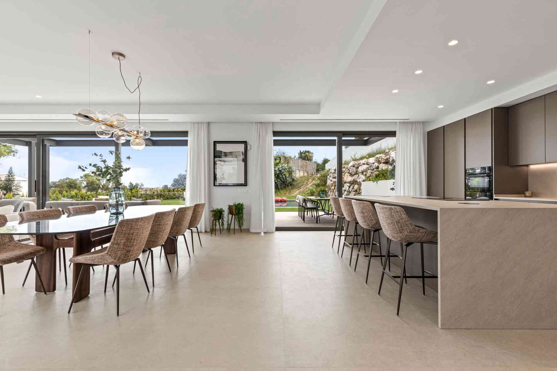 A villa minden részlete a kifinomultságot és a funkcionalitást tükrözi. A tágas, napfényben úszó nappali közvetlen kapcsolatban áll a modern, nyitott konyhával, valamint a terasszal és a kerttel, így ideális helyszínt biztosít a pihenéshez és a vendéglátáshoz.