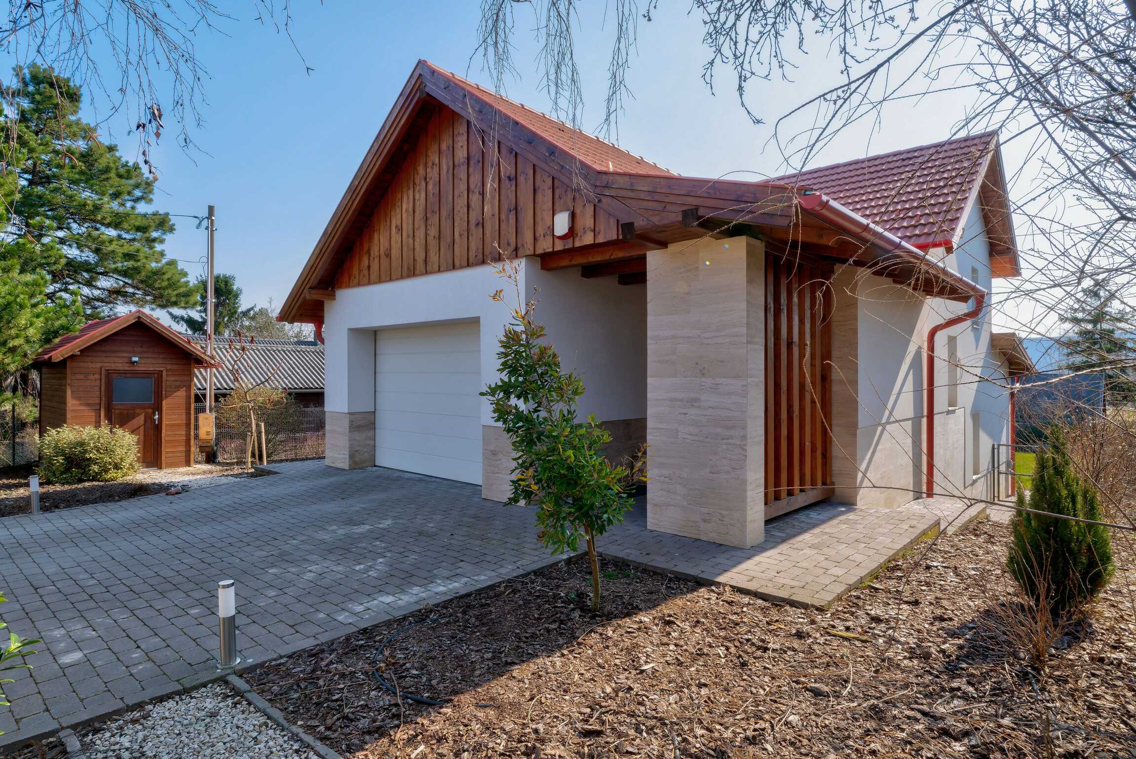 A kert praktikus kiegészítője a ház stílusához igazodó KERTI TÁROLÓ, amely esztétikusan illeszkedik az ingatlan megjelenéséhez.