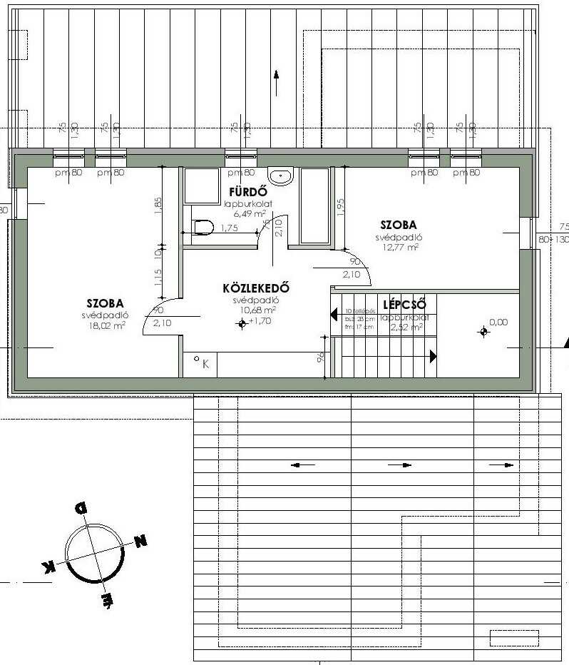 Két kényelmes méretű SZOBA, FÜRDŐSZOBA, valamint egy tágas közlekedő és lépcsőtér biztosítja a család privát életterét.