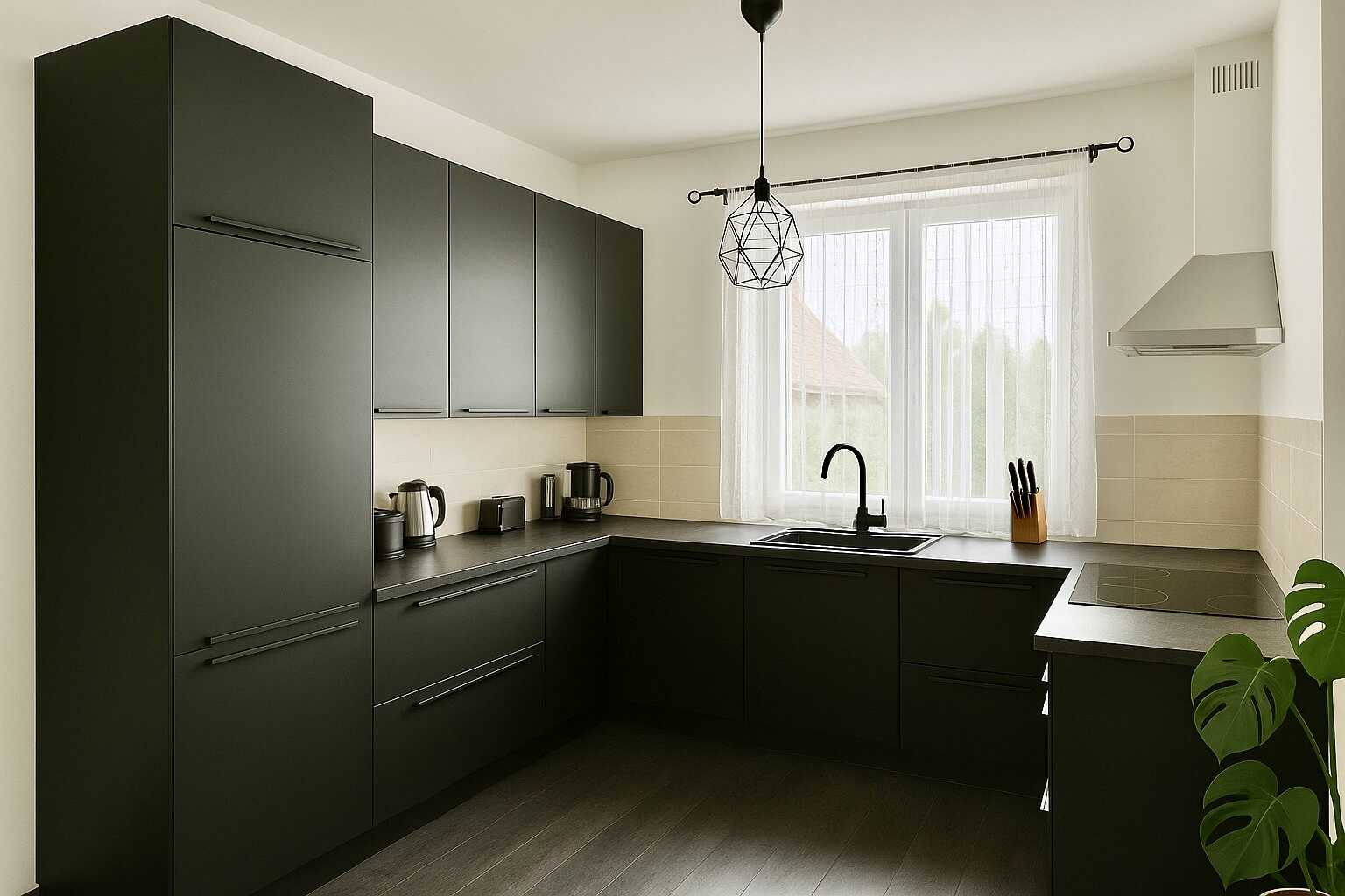 •Amerikai konyhás nappali modern, gépesített konyhával