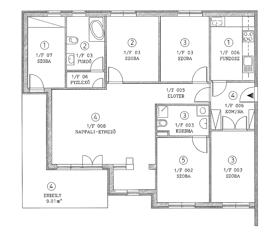 •Alapterület: tágas nappali + 3 külön nyíló hálószoba