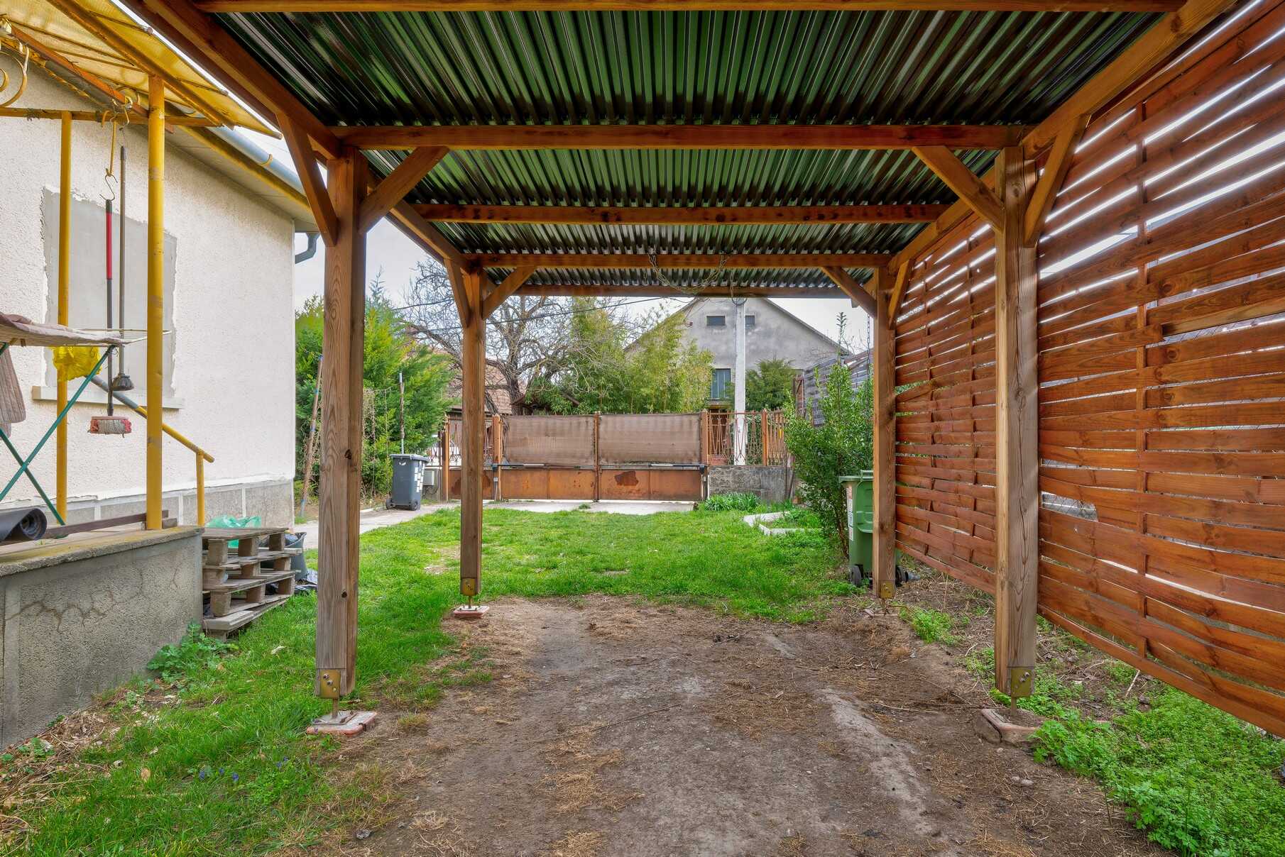 Az épület részben alápincézett, az udvaron egy gépkocsi számára fedett beálló áll rendelkezésre, a ház mögött pedig egy nagyobb méretű fészer is található, amely tárolásra, műhelynek vagy egyéb praktikus célra jól használható.