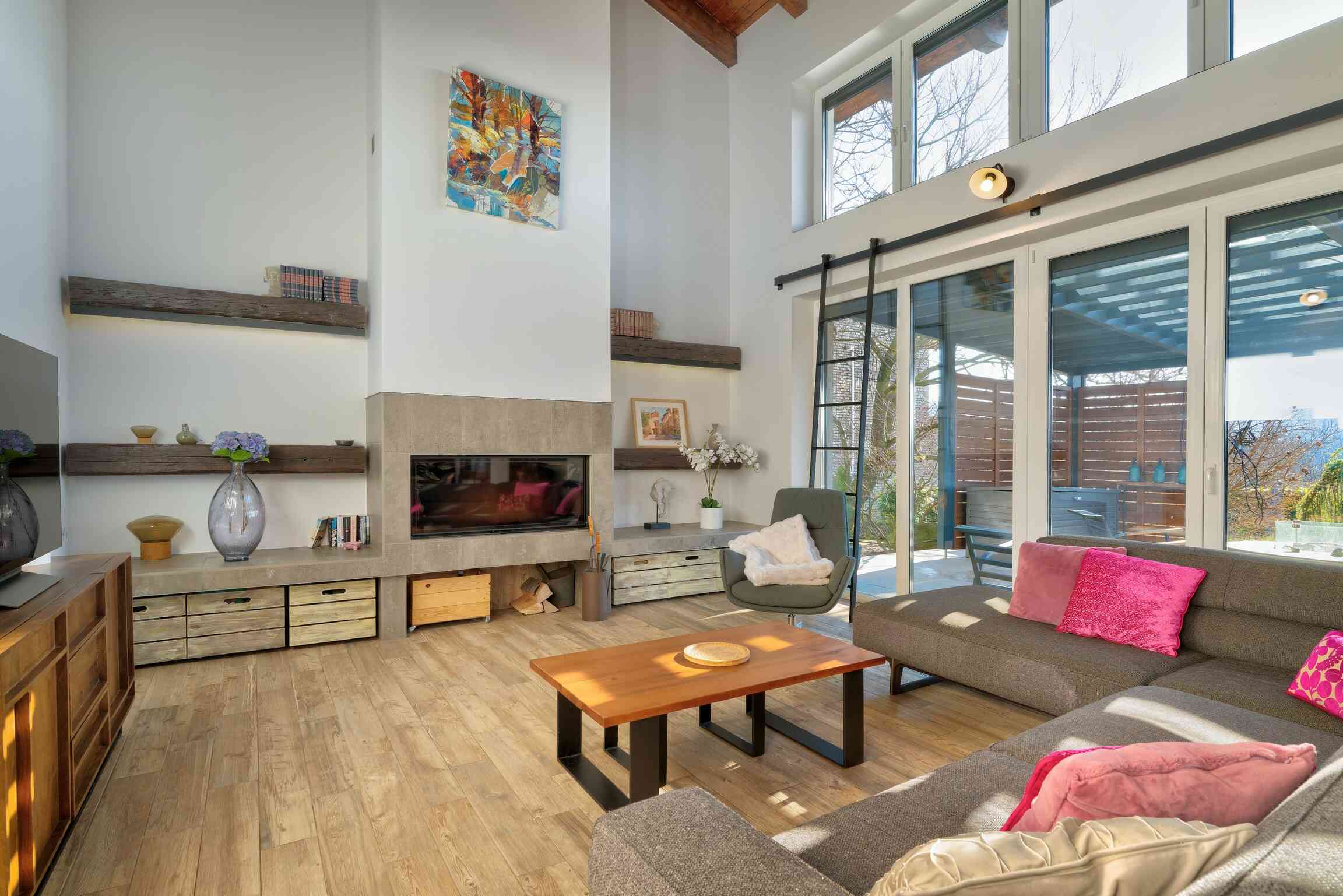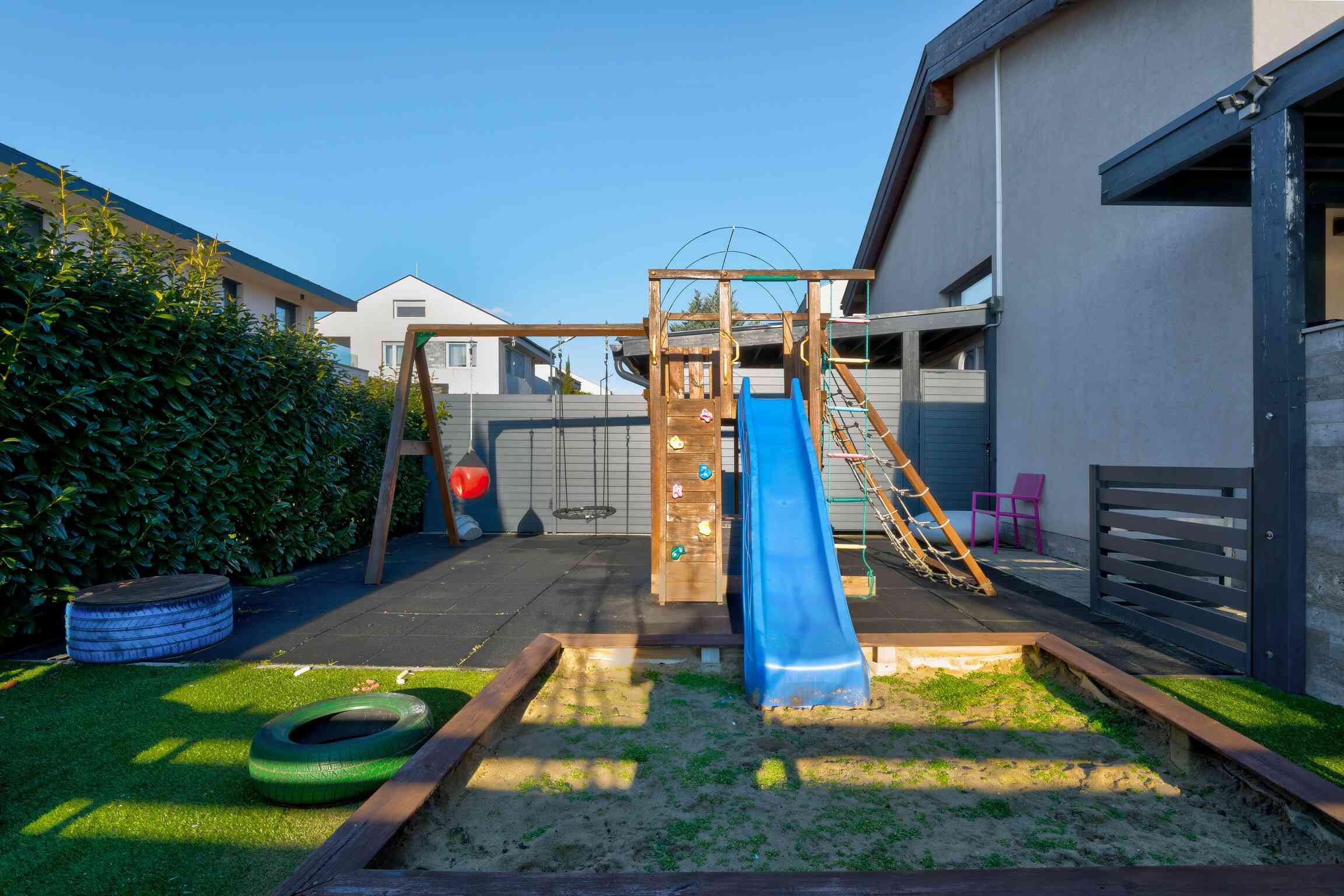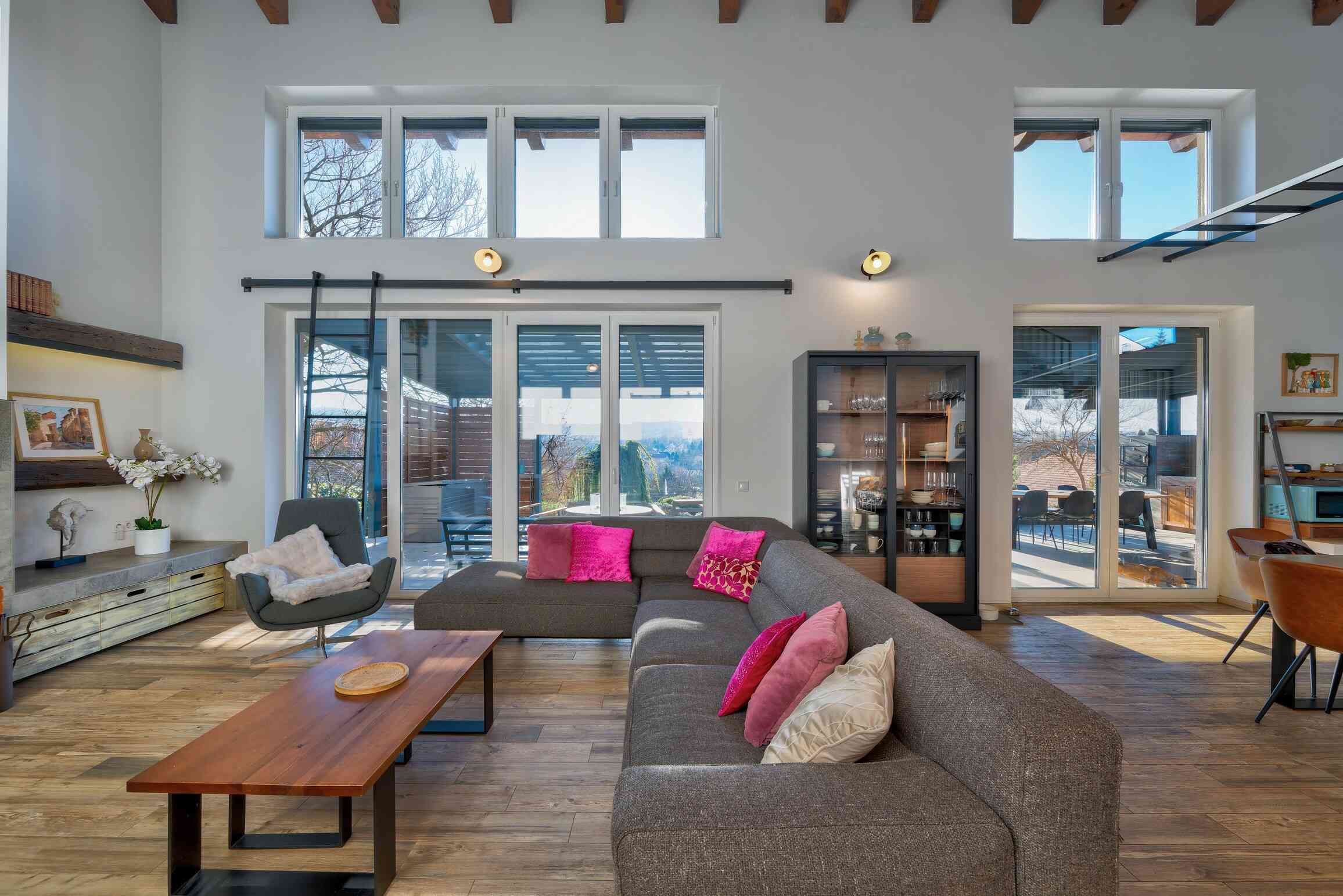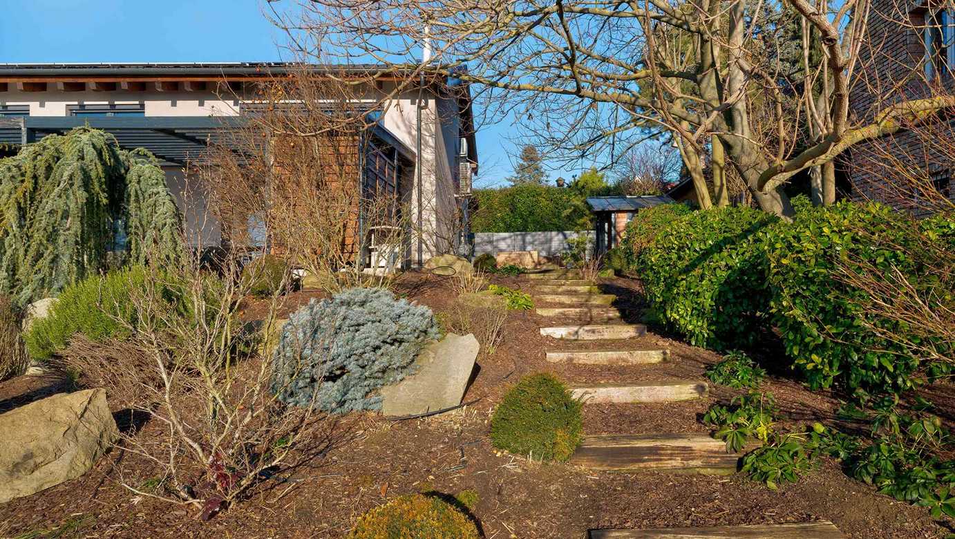 A 74 m²-es fedett terasz kerti konyhával és kültéri nappalival valódi plusz életteret biztosít. A kert teljes szélességében panorámás, gondozott kialakítású. 3×8 méteres, fűthető, sós vizes medence, magaságyások és zárt gyermekjátszótér található benne.