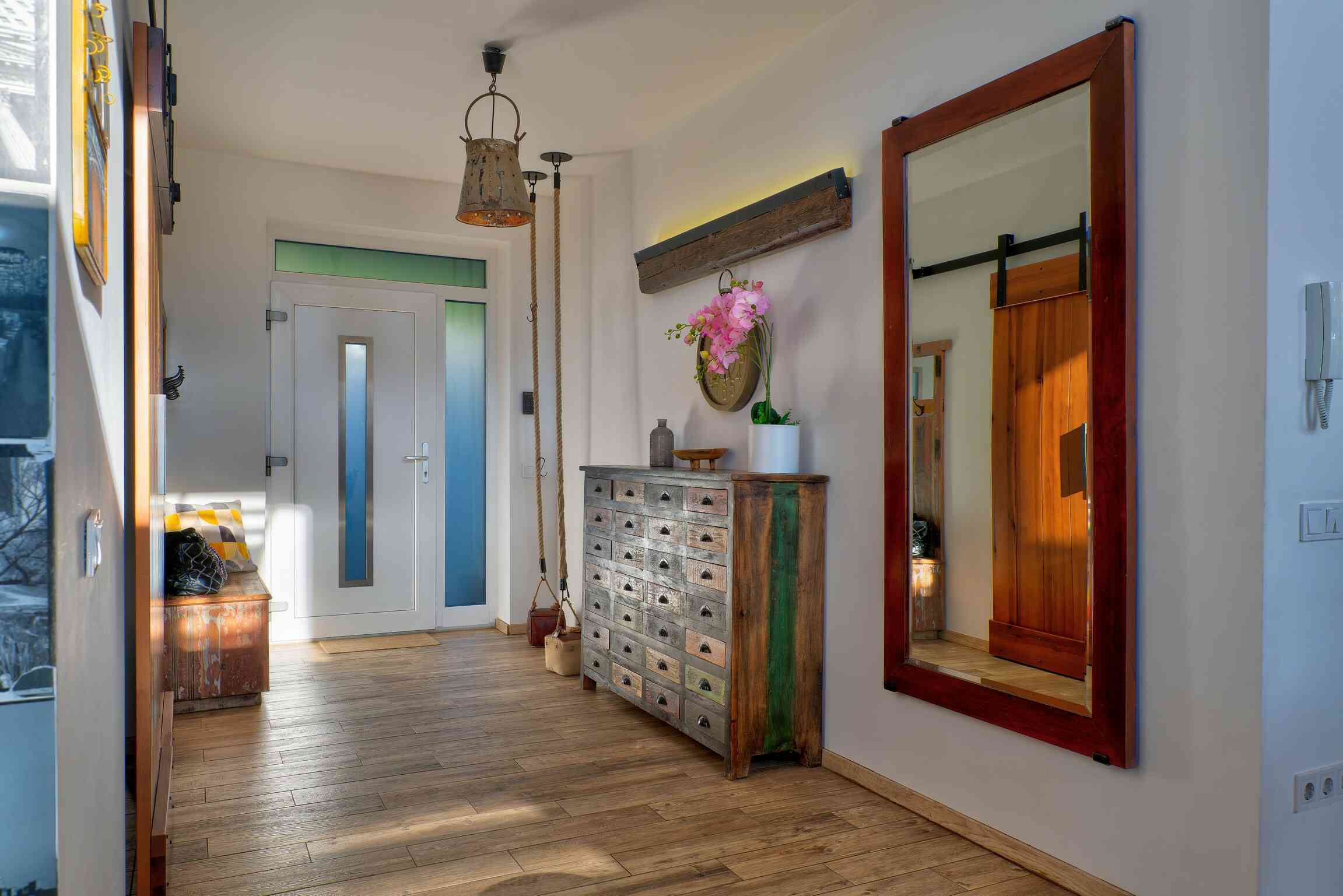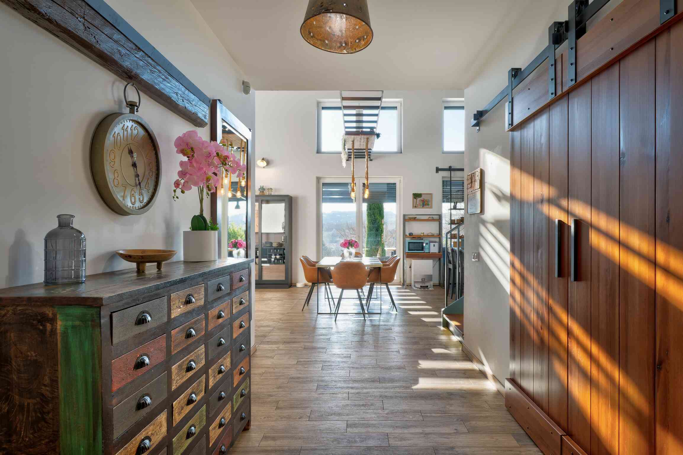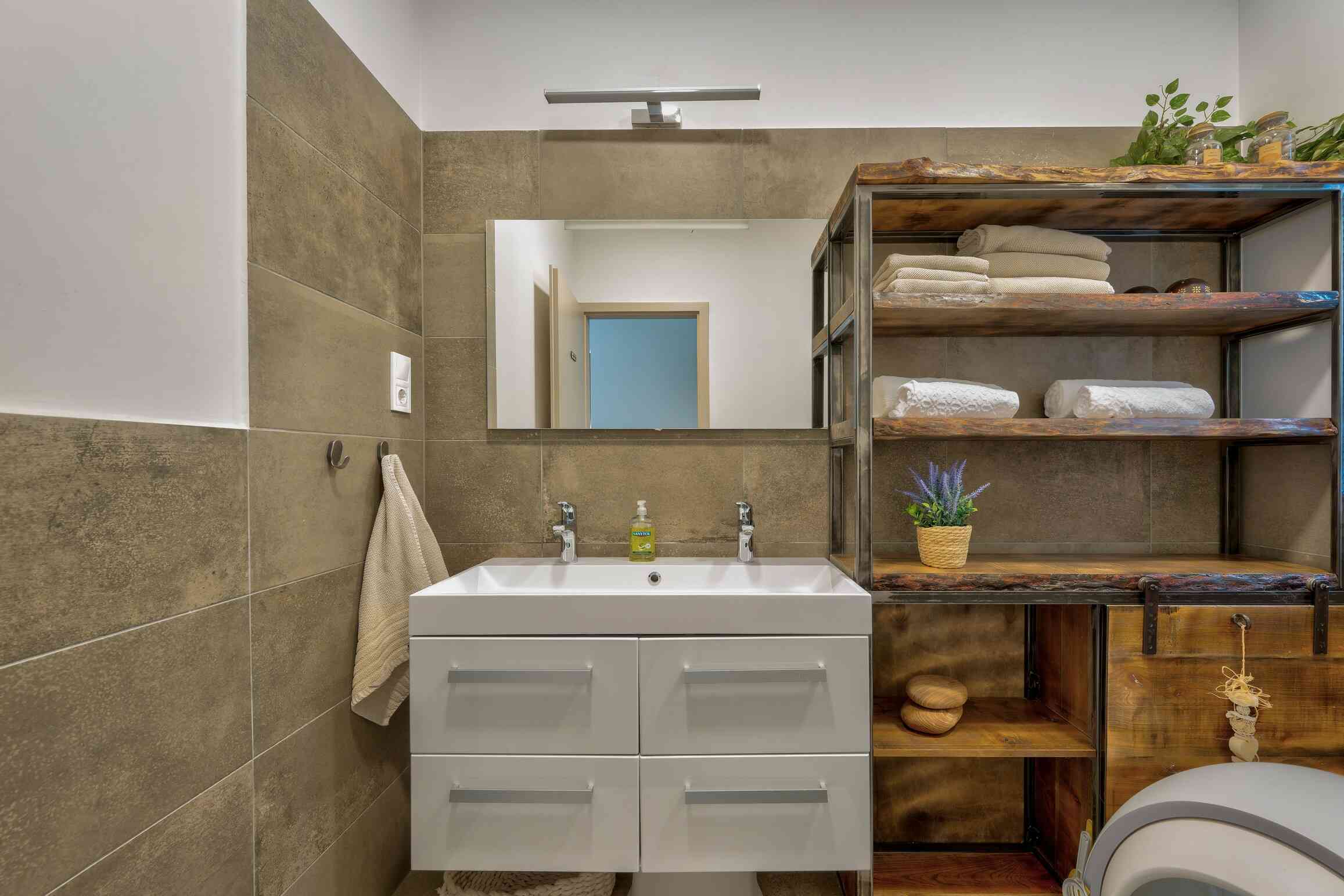 Stílusában meleg hangulatú, modern farmház jellegű otthon, természetes és időtálló megoldásokkal. Garázs nincs, de közvetlenül a ház mellet fedett autóbeálló van.