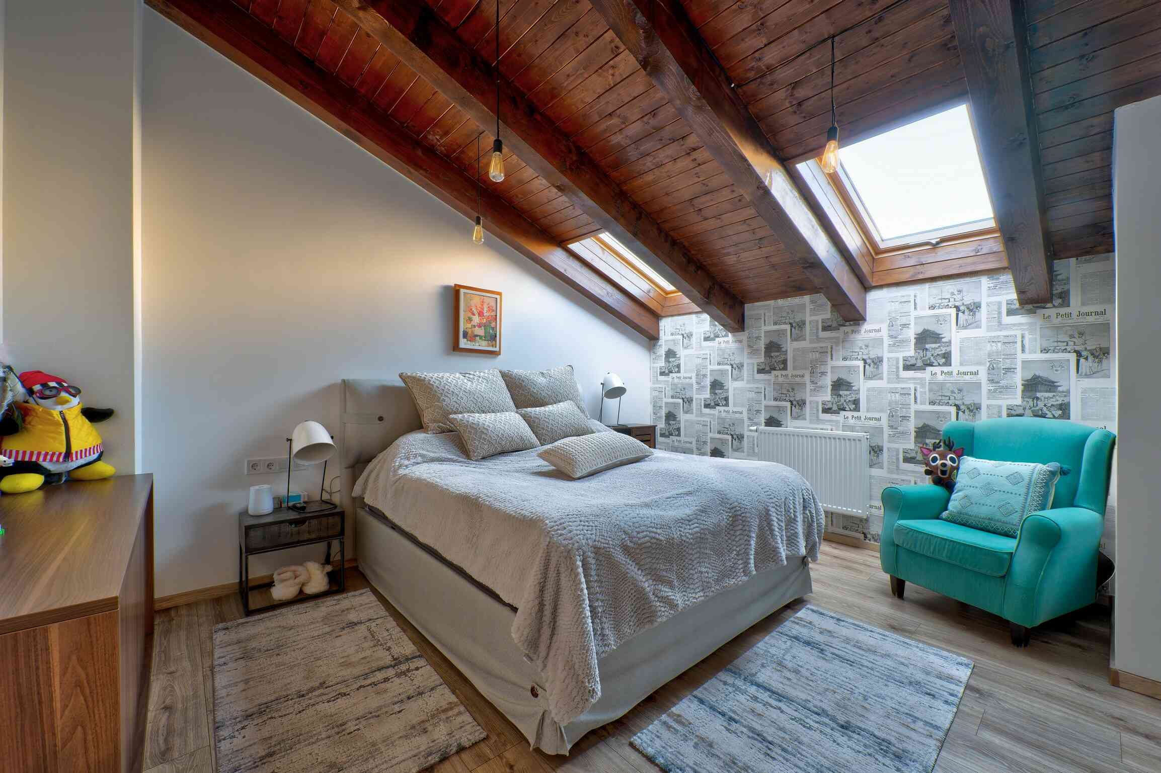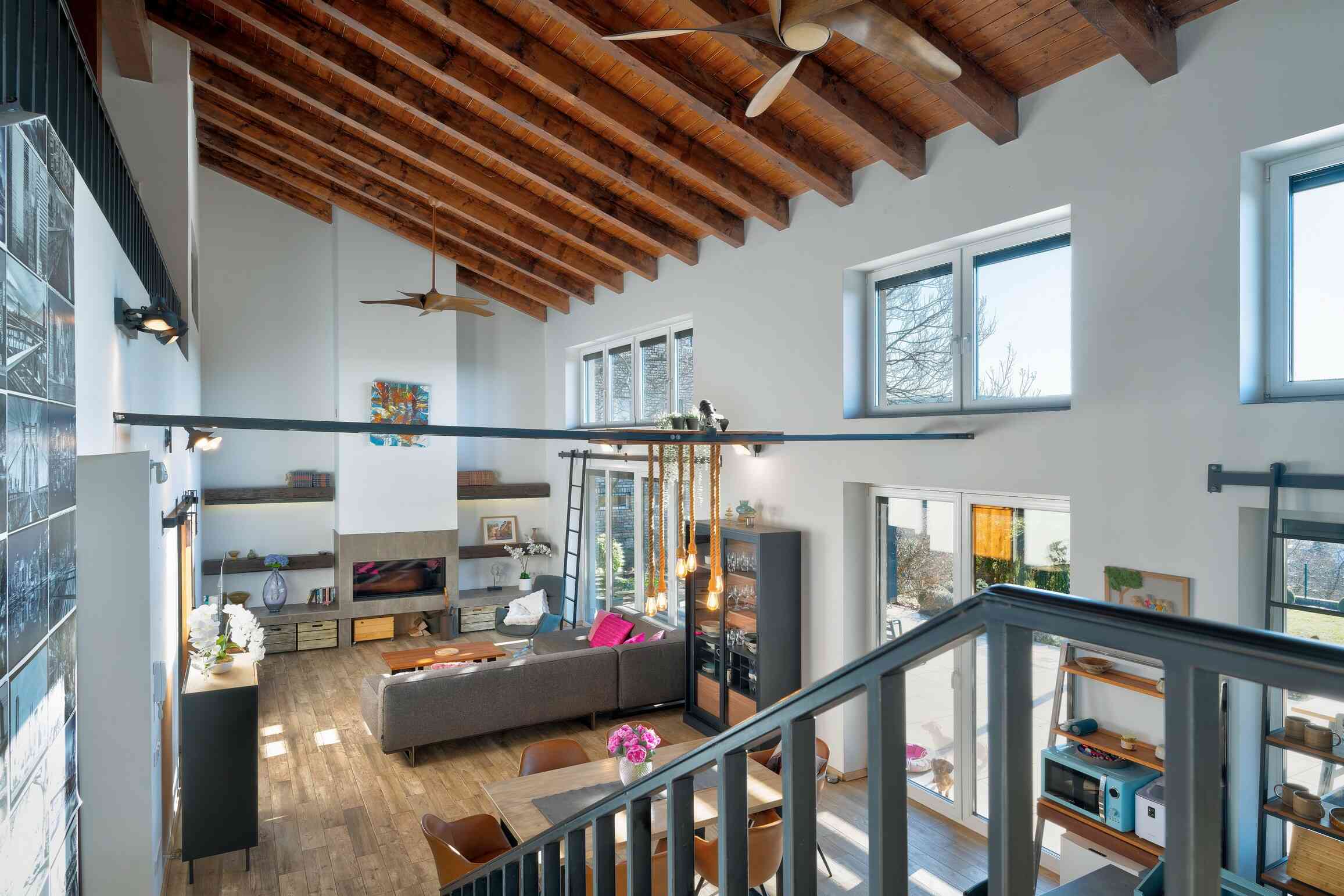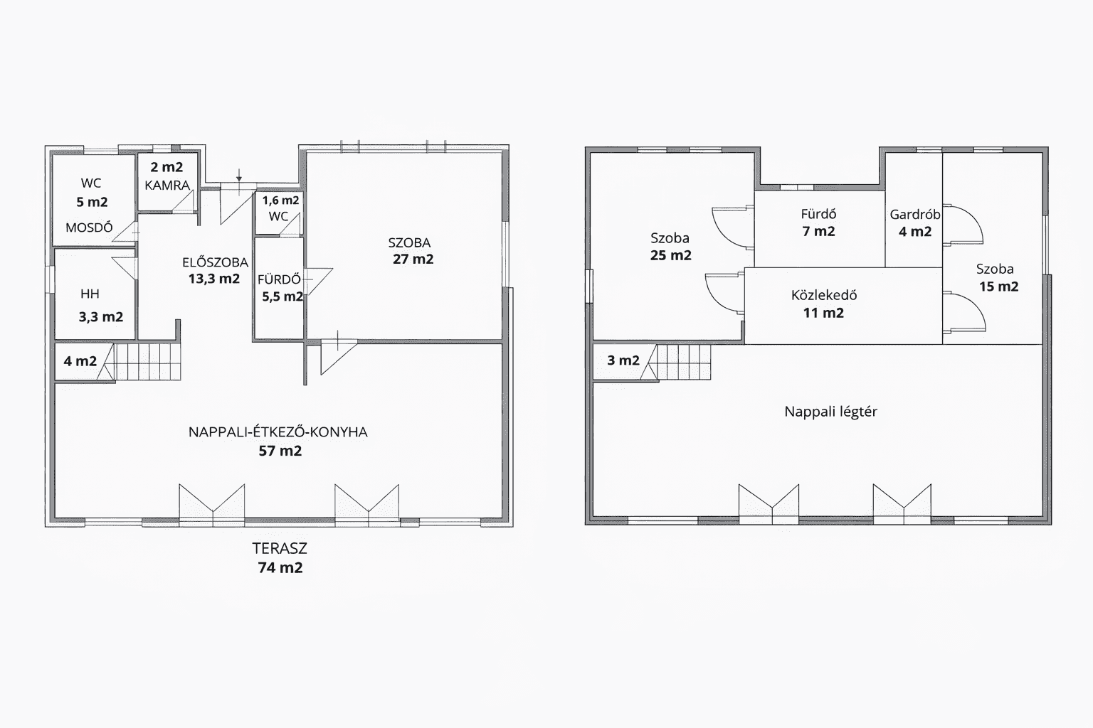 A ház ideális méretű és átgondolt elrendezésű. A központi élettér a dupla belmagasságú, világos nappali, amelyhez három külön hálószoba és két fürdőszoba kapcsolódik. A földszinten van külön háztartási helyiség, vendég mosdó és a hálószobákból az egyik itt helyezkedik el, egy nagyobb fürdőszobával. Az emeleti kettő hálószobához 1 fürdőszoba és egy gardrób tartozik.